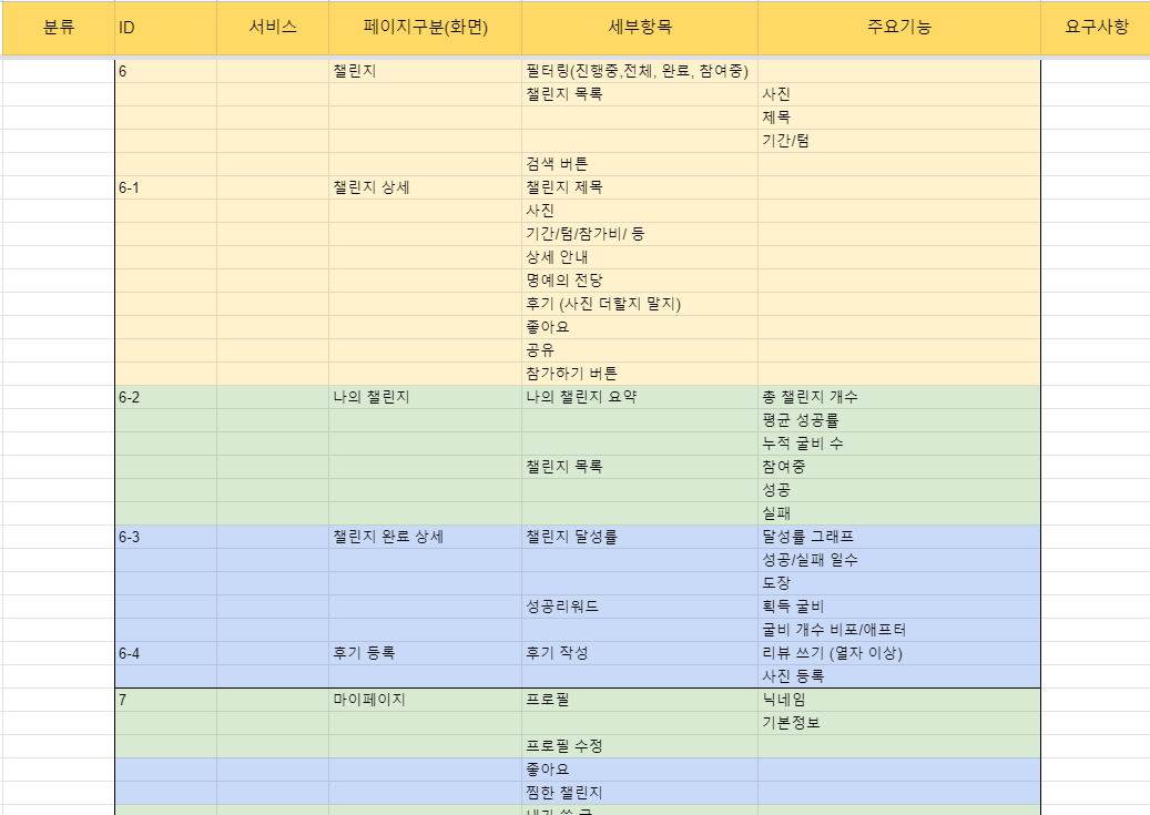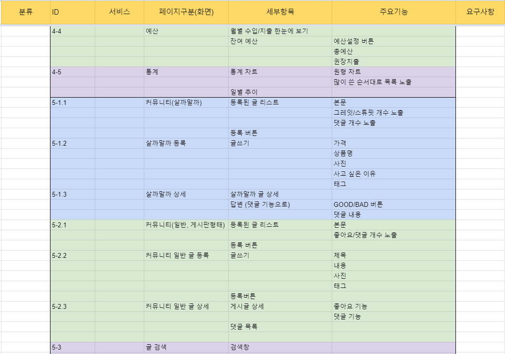 이렇게 하는게 맞는지는 잘 모르겠지만...구글 스프레드시트에 와이어프레임을 보면서