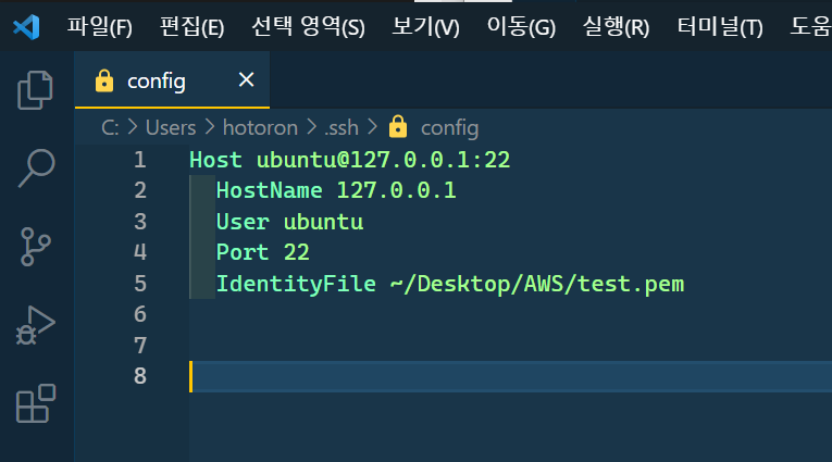 IdentityFile : 키 파일(.pem 확장자) 위치. 상황에 따라 생략 가능