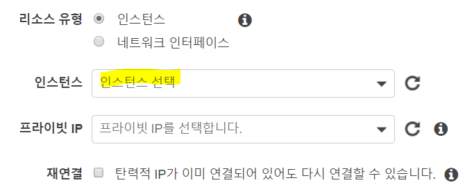 인스턴스를 선택해서 아까 만들어둔 인스턴스에 연결을 시킨다.