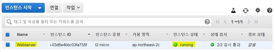 인스턴스 상태에 초록색과 함께 running이라고 써있으면 성공!!