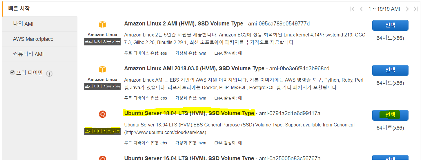 프리티어 사용 가능이라고 적혀있는것을 확인하고 OS의 종류, 버전 등을 비교후 원하는 제품을 선택한다.