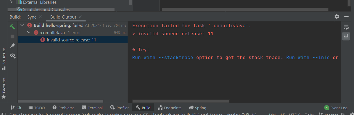 Execution failed for task ':compileJava'. 에러가 발생했다